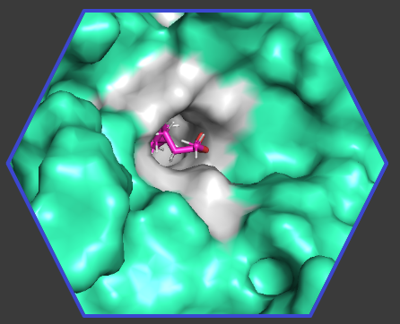 Our Quantum Lens analysis revealed that more than 50% of the binding contributions for the inhibitor came from peripheral residues (blue in the picture) beyond the active site (pink).
